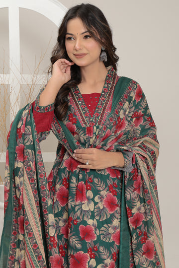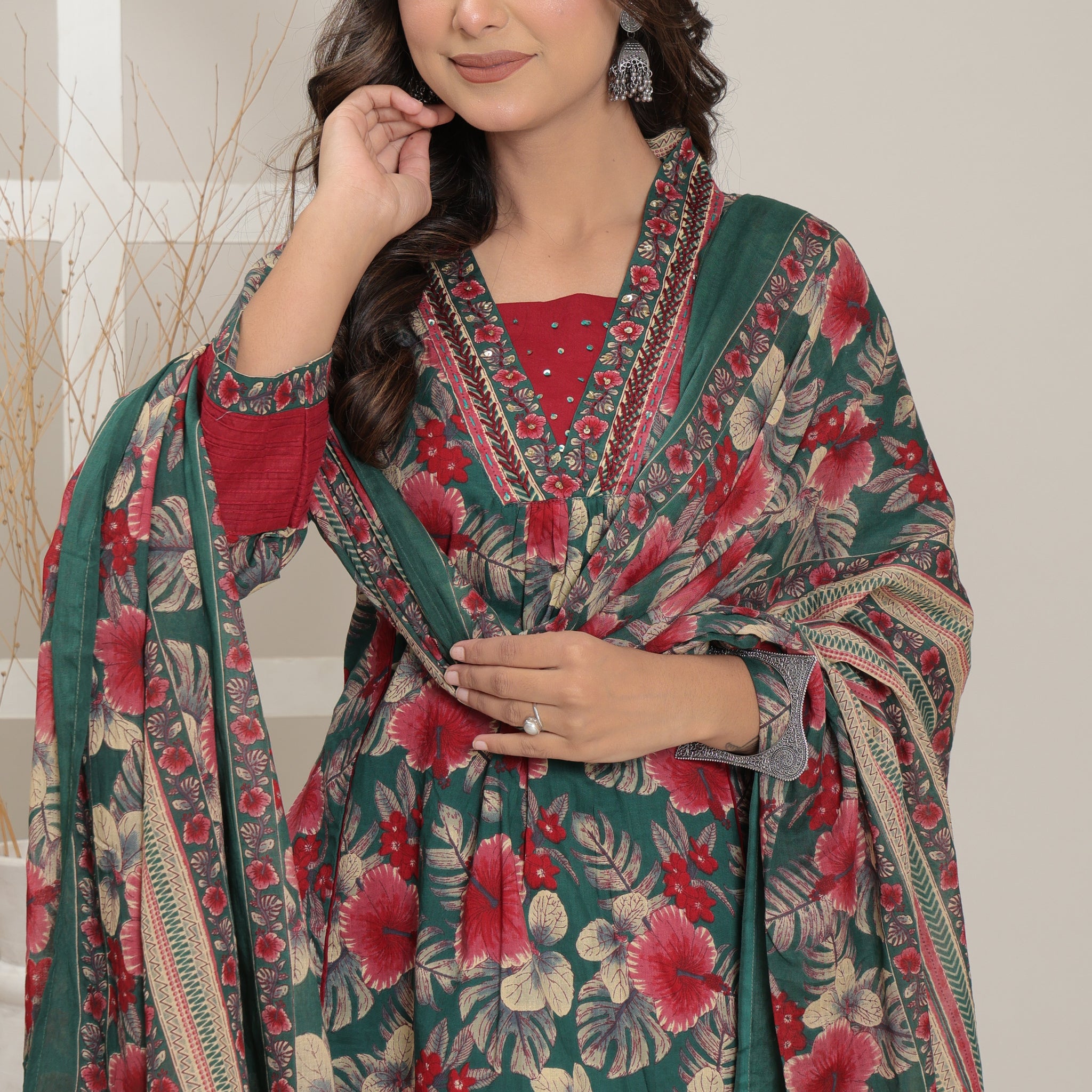 Ruii Fashion Teal Floral Anarkali Kurta with Palazzo Pants