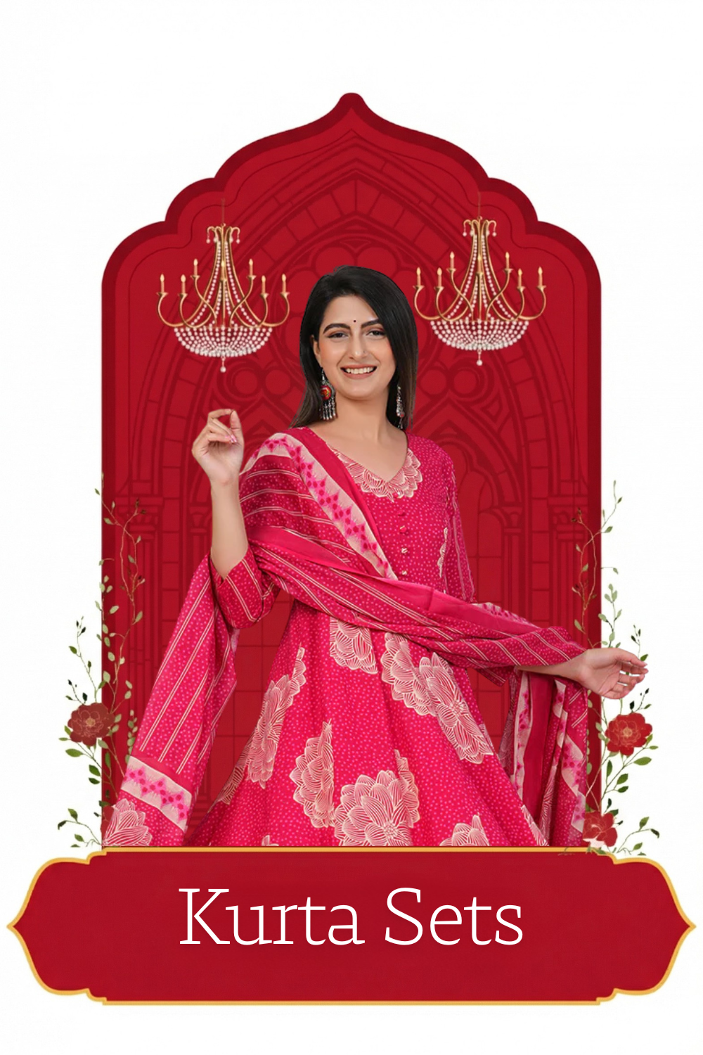 Elegant Pink Floral Print Anarkali Kurta Set with Straight Pants