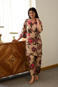 Upgrade your wardrobe with this Beige Floral Printed Cotton Co-Ord Set, a perfect blend of tradition and contemporary fashion. The set features a beautifully crafted co-ord with a bold floral print, paired with matching straight-fit pants for a complete and elegant look.