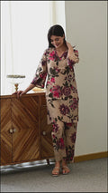 π¨ Color: Beige with Burgundy & Pink Floral Print