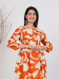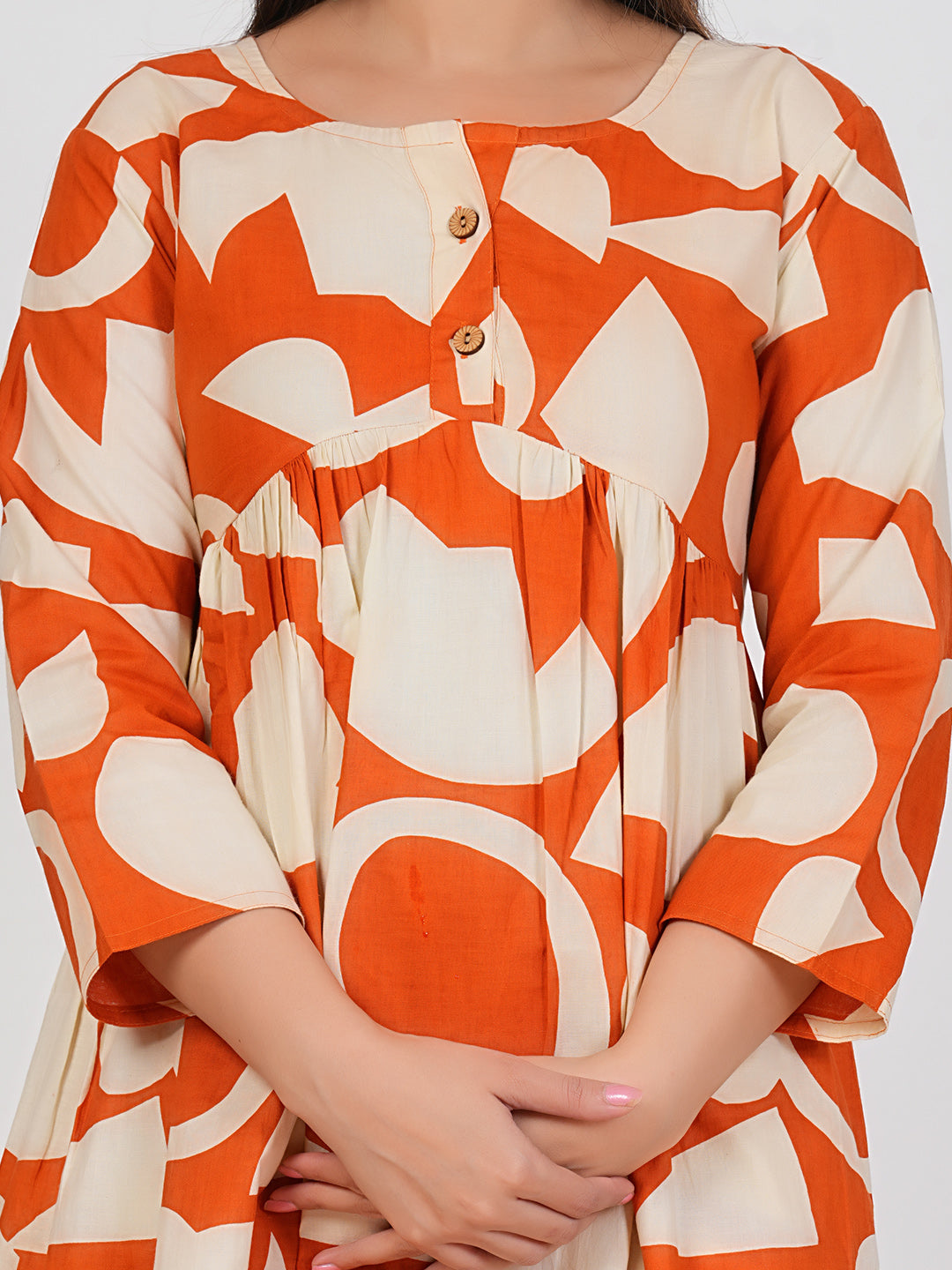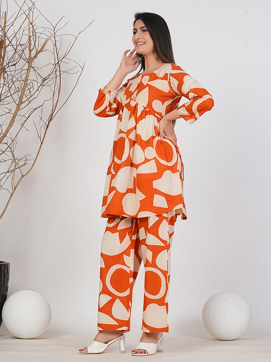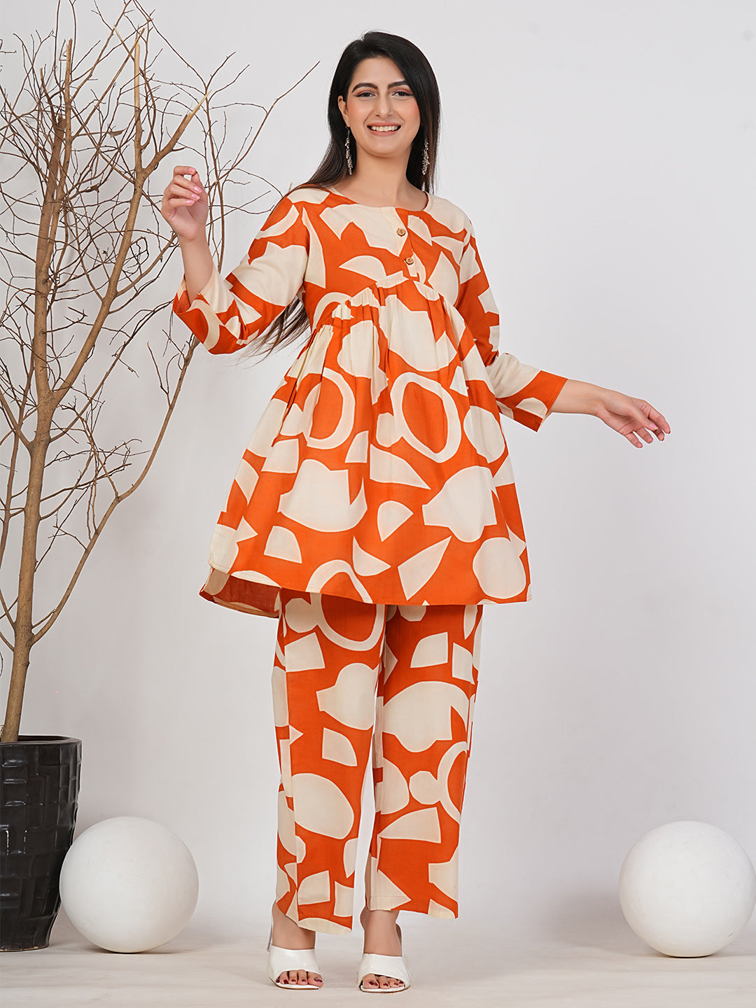Bold Elegance: Orange & Beige Geometric Co-ord Set by Ruii Fashions