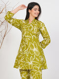 Elevate your wardrobe with this chic olive green co-ord set, featuring a delicate floral print that brings subtle elegance to your look. Crafted for comfort and style, the coordinated pieces offer a seamless blend of modern design and timeless appeal, perfect for both casual outings and semi-formal events. The breathable fabric ensures all-day comfort, while the tailored fit enhances your silhouette effortlessly. An expert choice for those who appreciate refined fashion with a fresh, natural palette.
