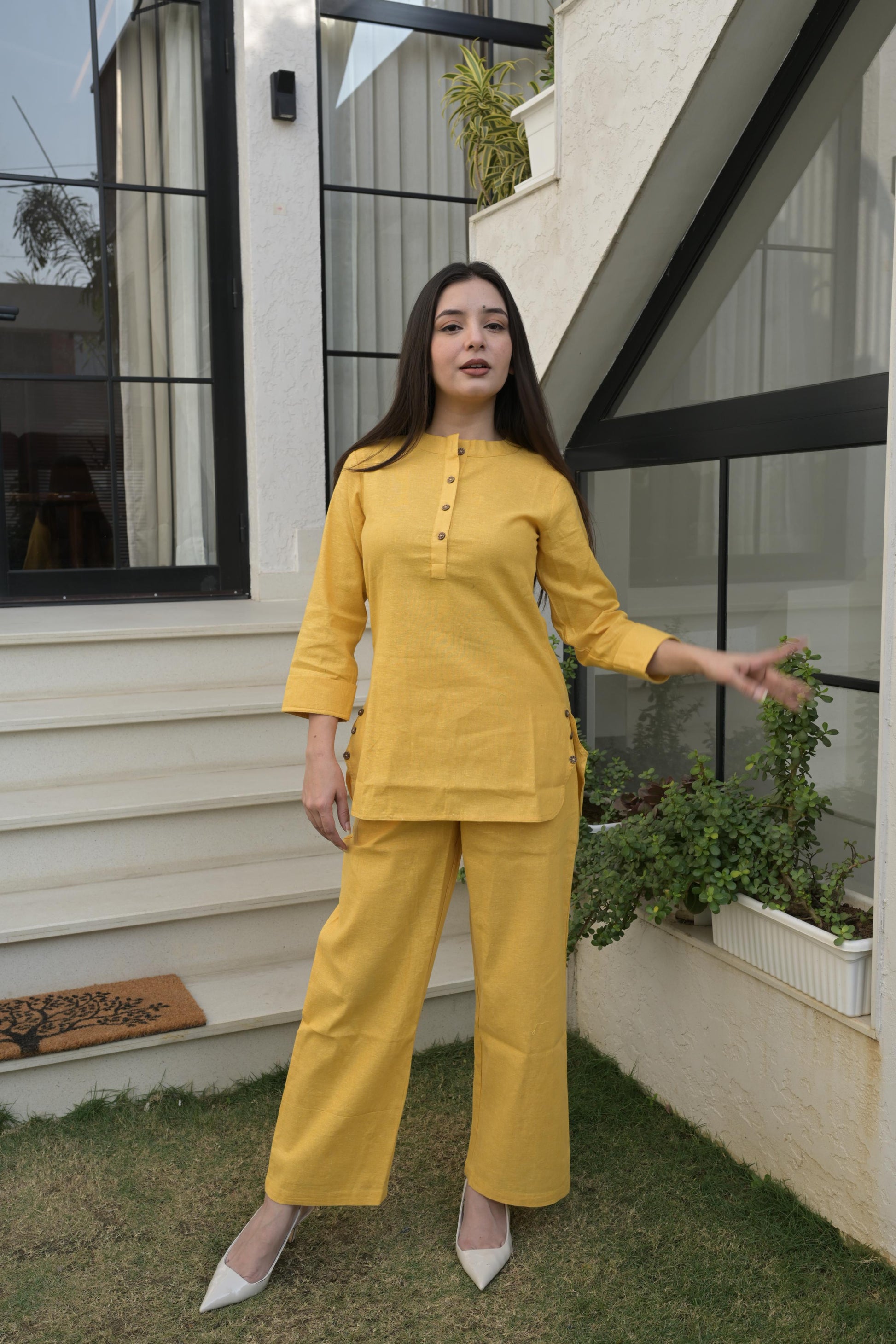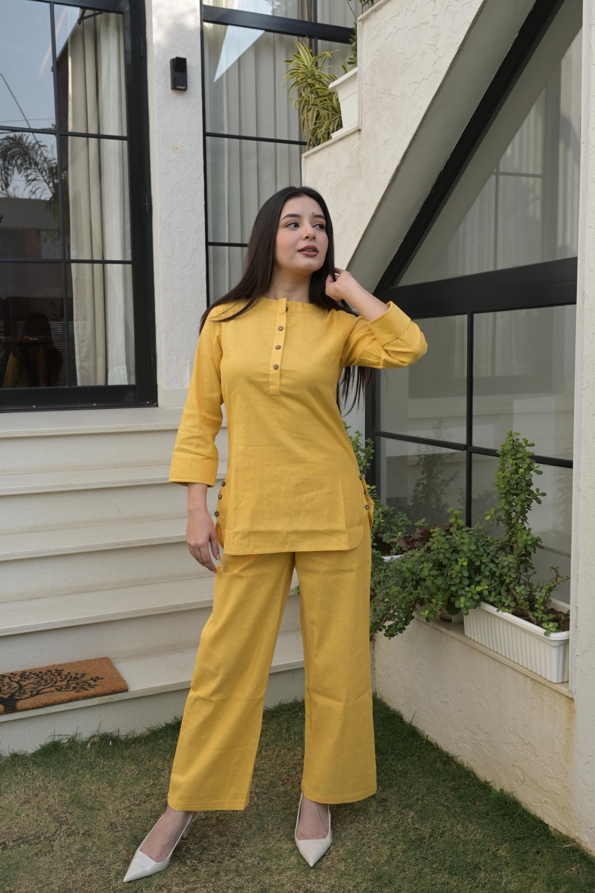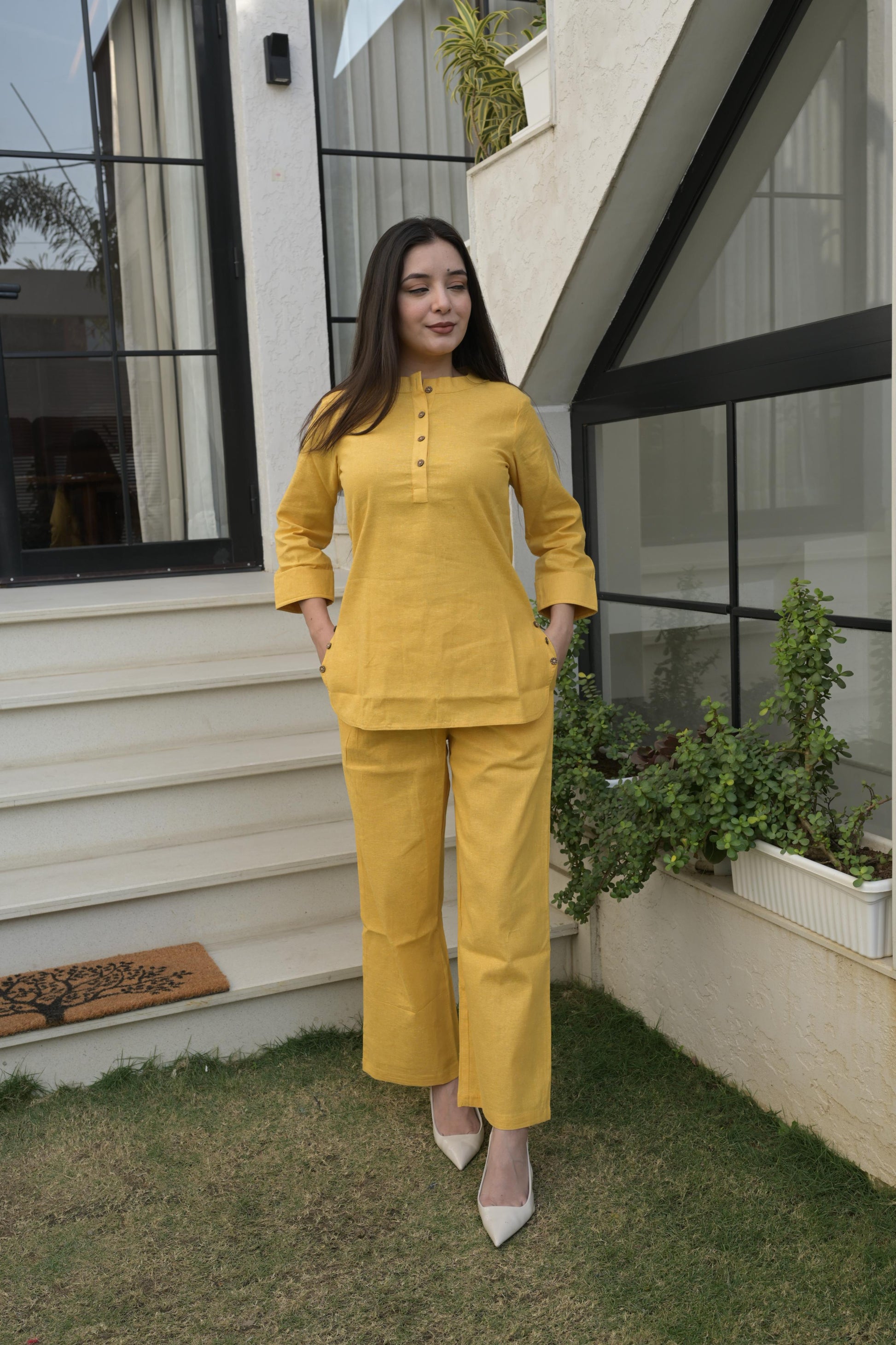Dark Yellow Cotton Comfort Fit Co-ord Set For Women