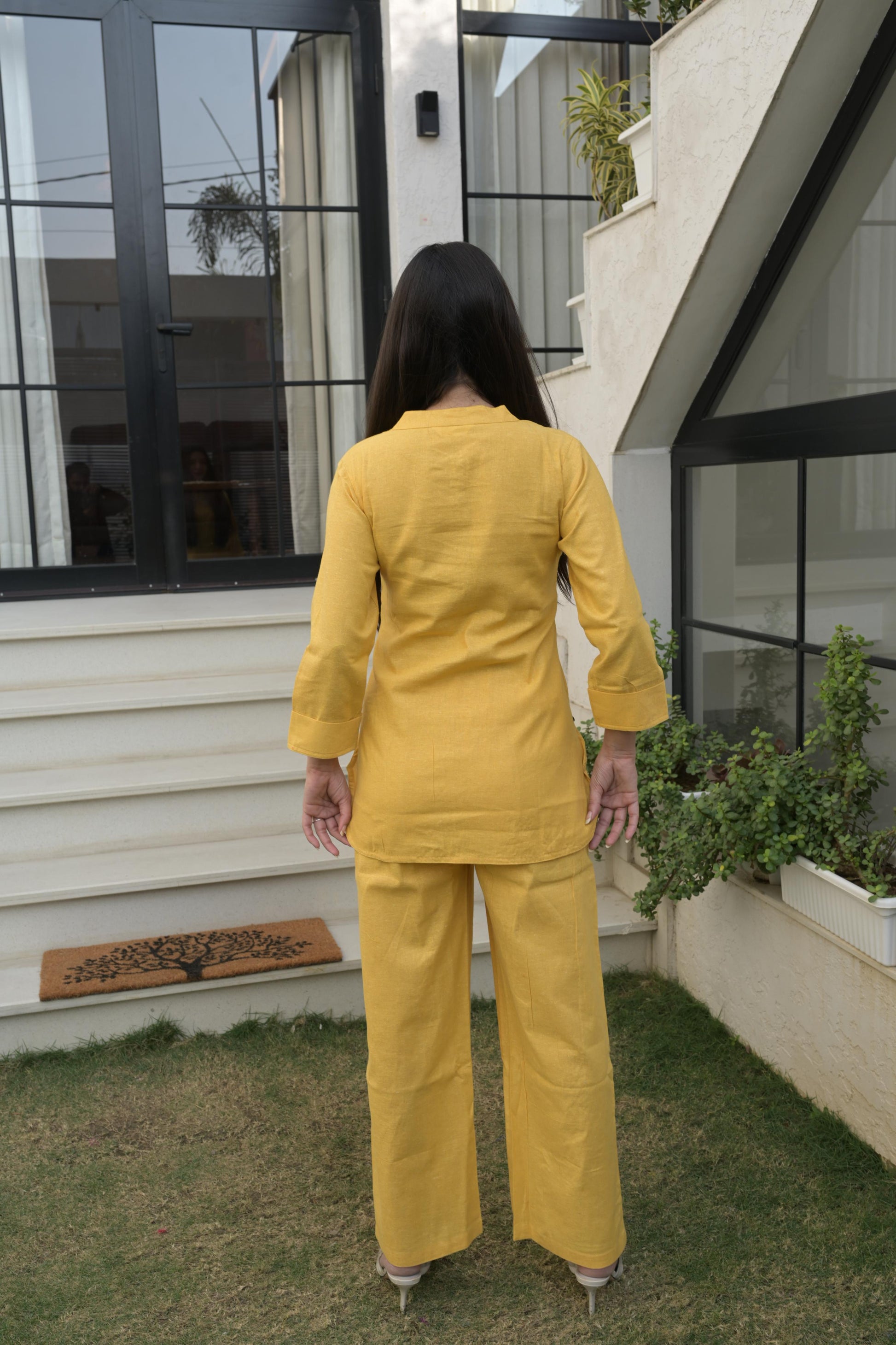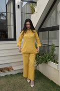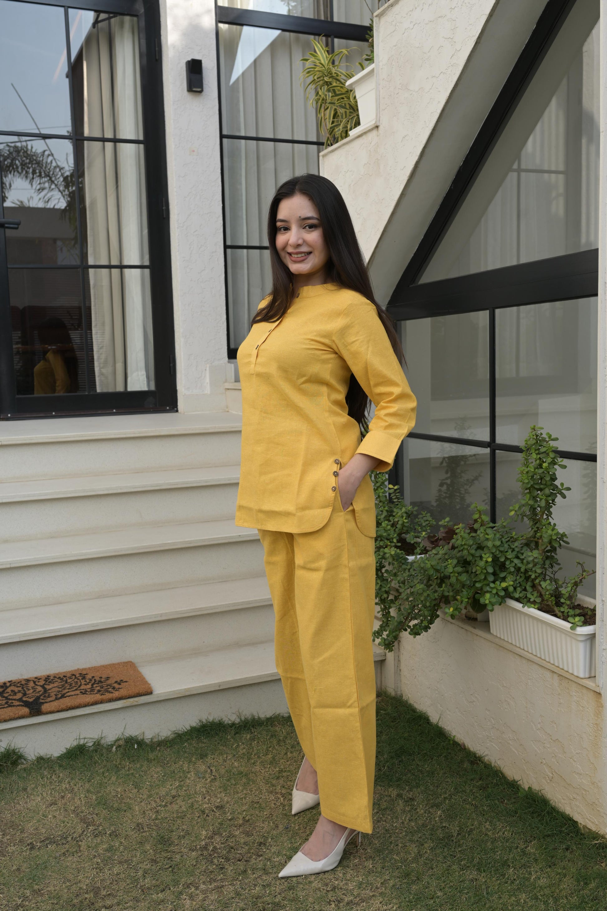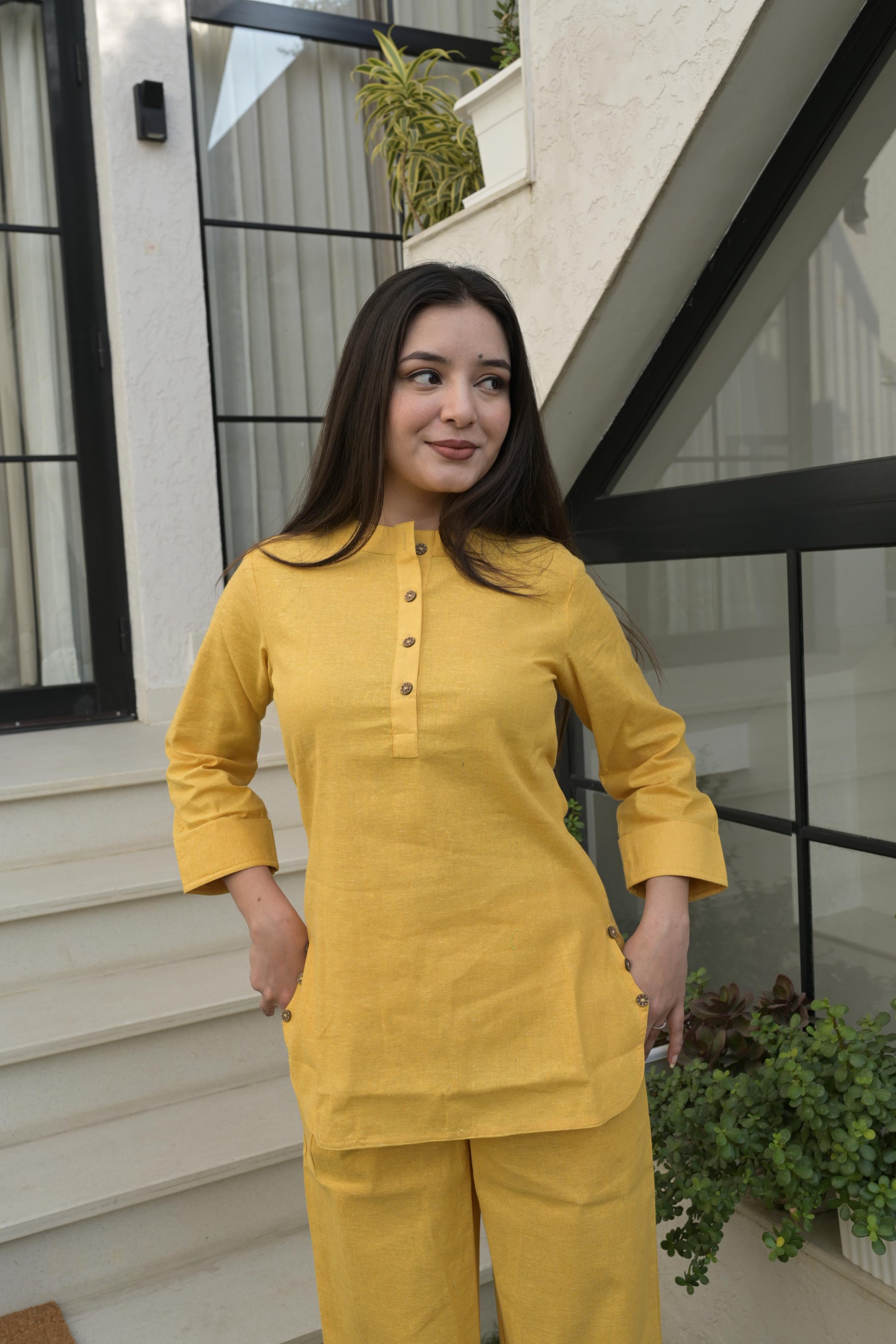 Dark Yellow Cotton Comfort Fit Co-ord Set For Women