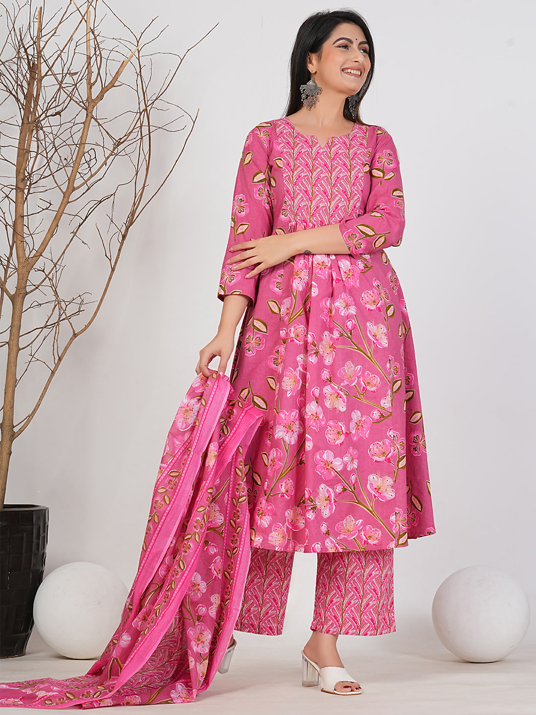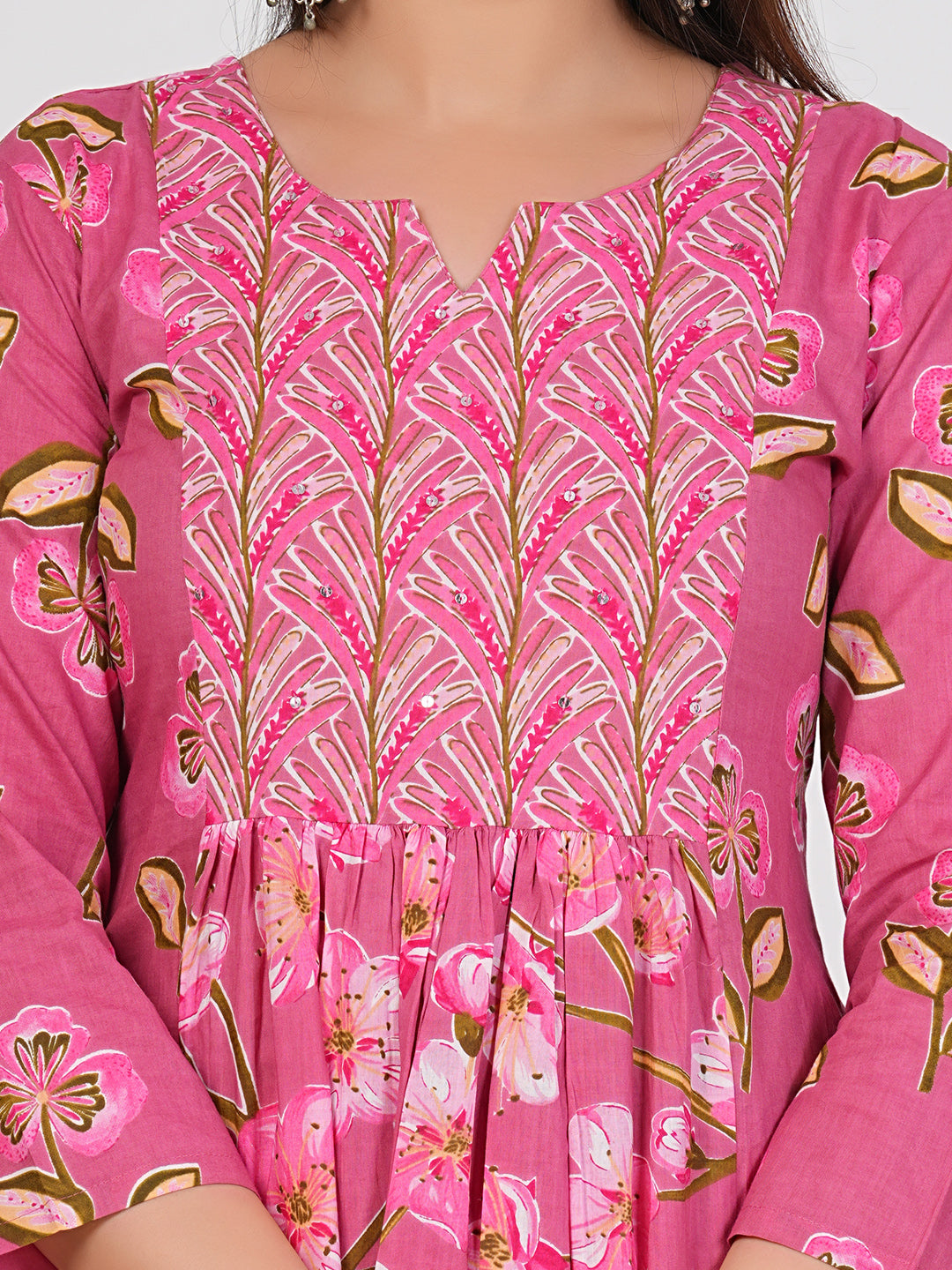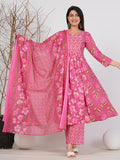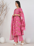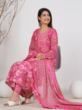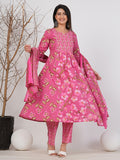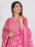 Elegant Ruii Fashion Long Anarkali Kurta with Floral Embroidery & Dupatta -Pink Printed Back View Style