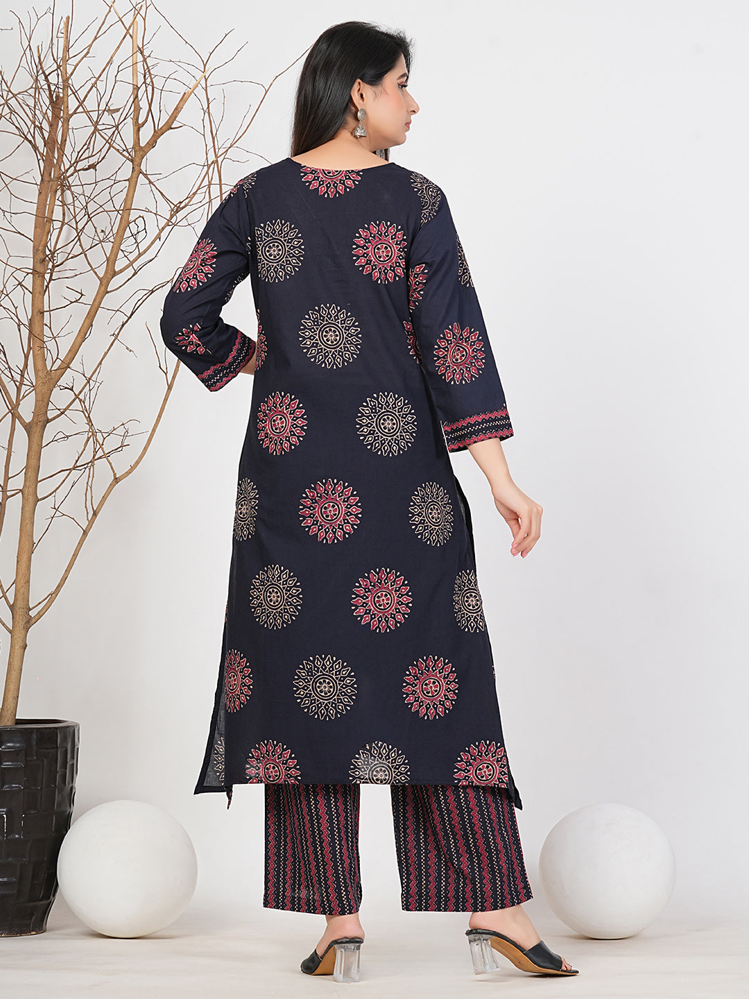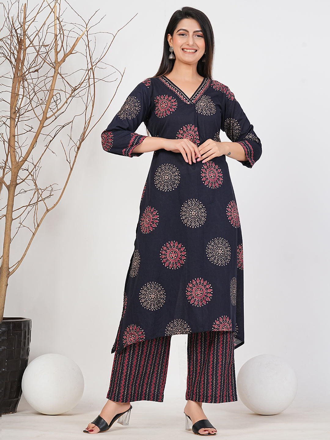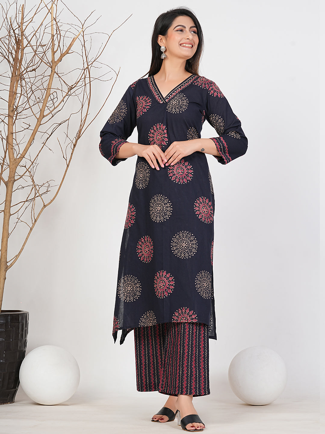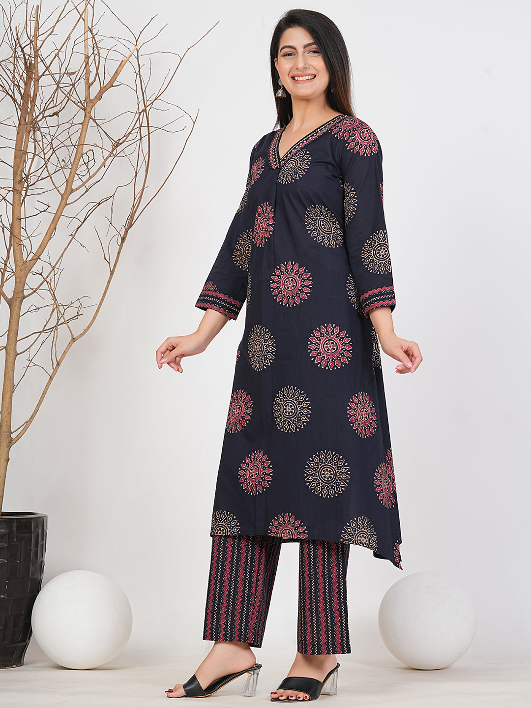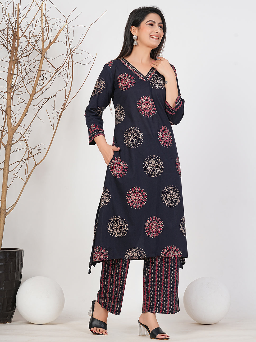 Graceful Navy Blue Printed Kurta Set for Modern Women | Ruhii Fashion