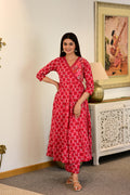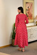 Enhance your ethnic charm with this graceful red Anarkali kurta set, a perfect blend of comfort and tradition. Crafted from soft and breathable fabric, this set is designed to keep you effortlessly stylish.Adjustable drawstring with tassels at the waist, allowing a customized fit while adding a charming detail.
