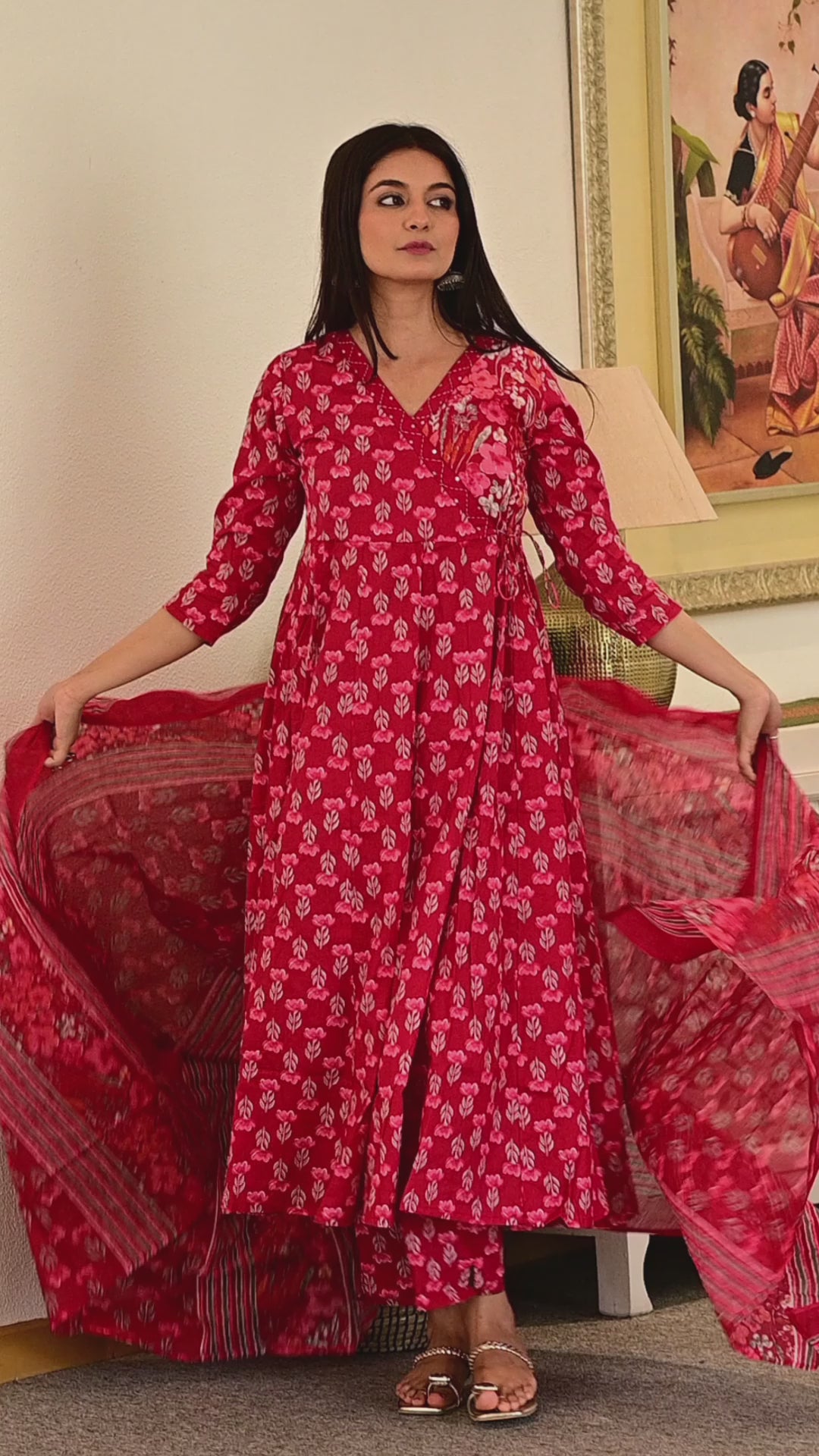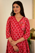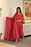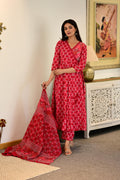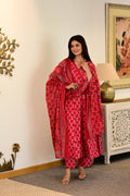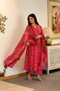 Radiant Red Floral Kurta Pant Set with Dupatta