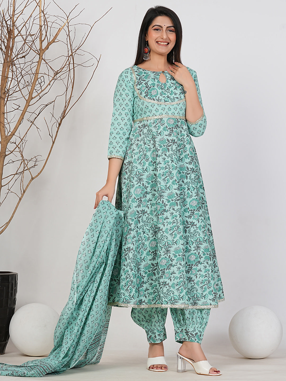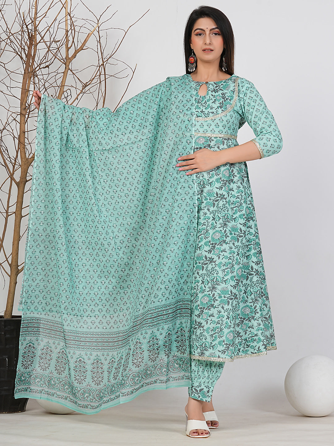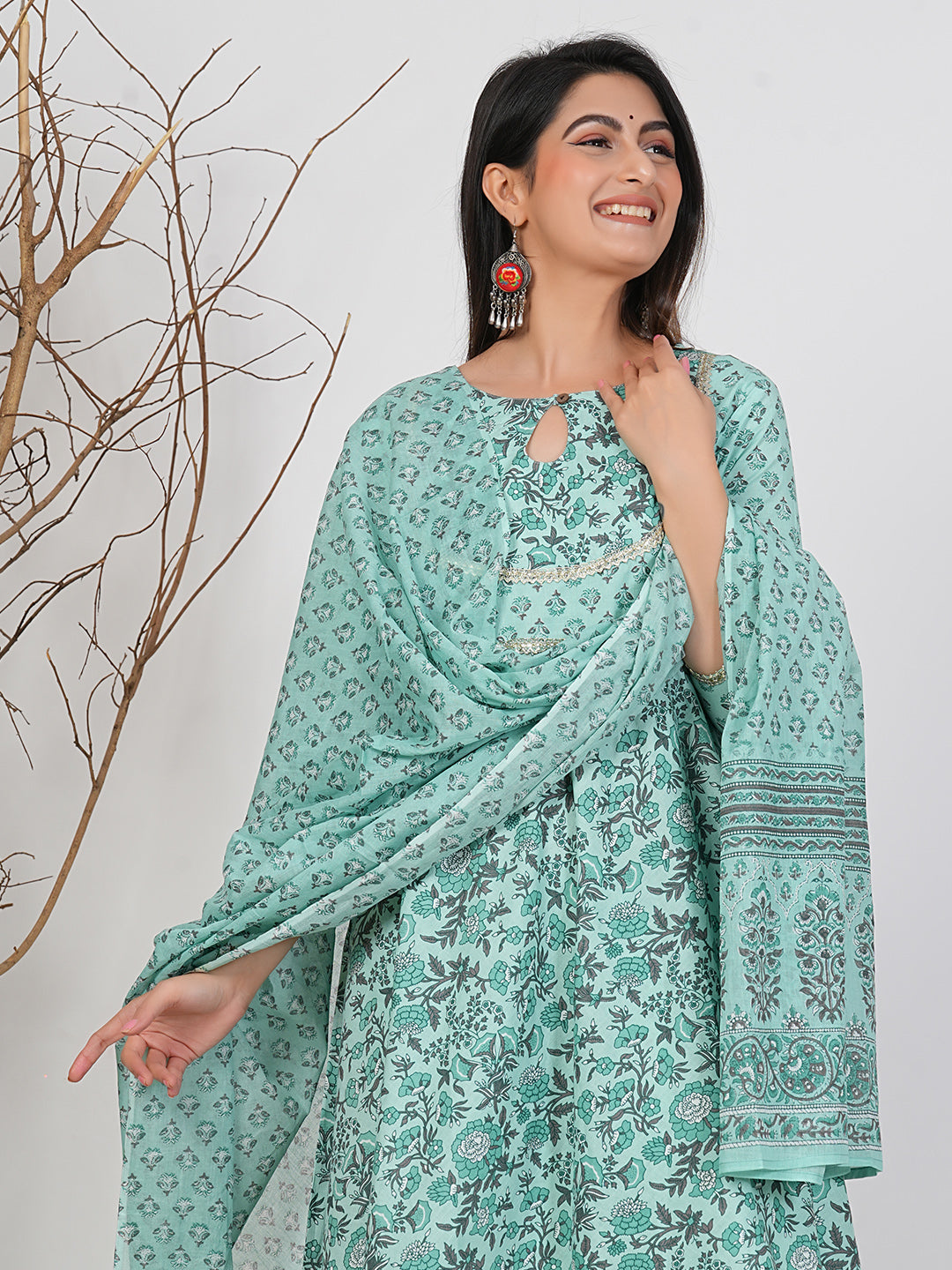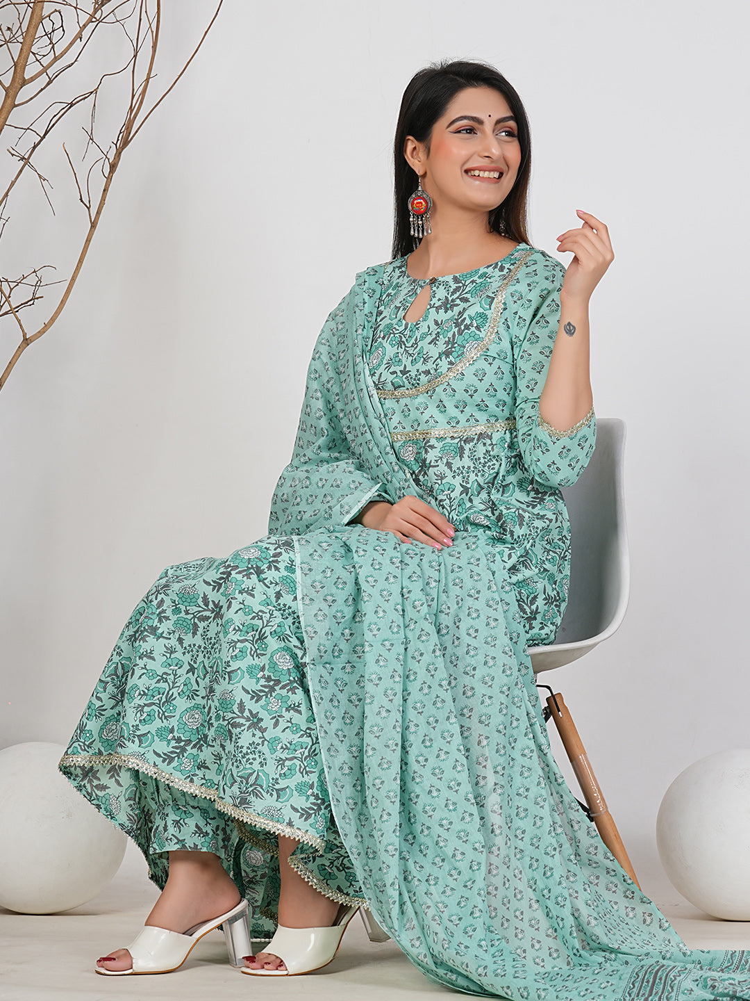 Ruii Fashion Mint Blossom Anarkali Suit with Churidar